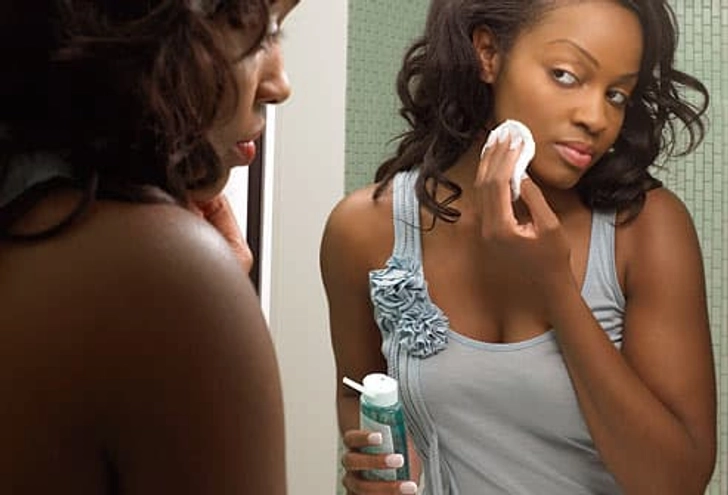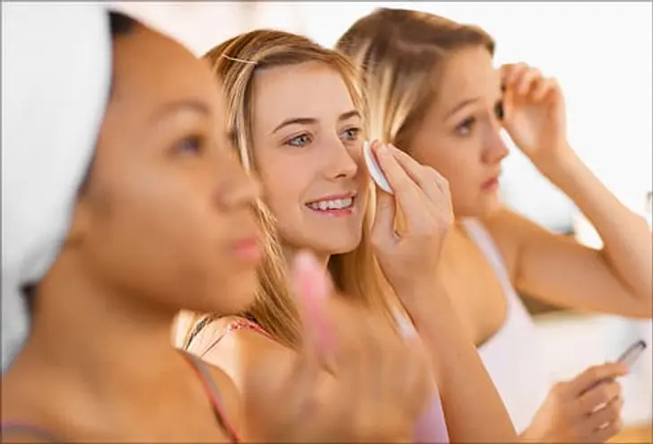 When you’re tired, it can be tempting to go to bed without washing your face. But leaving makeup on your skin can clog your pores and cause acne. So wash it off with a gentle cleanser or makeup remover. Use a soft wash cloth or cotton pads. If you use acne medicine, now’s a good time to put it on — when your face is clean and you won’t be putting on makeup.